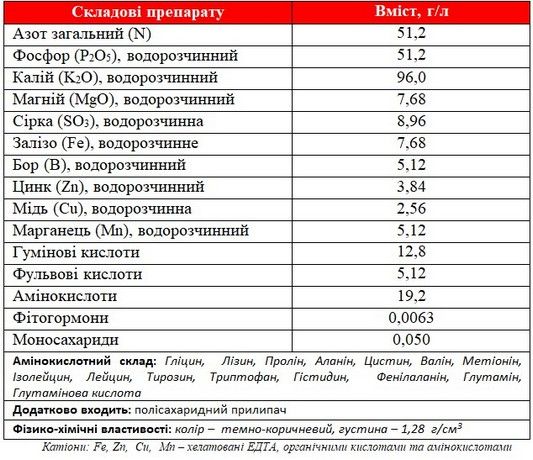 - Гармонично сбалансированный аминокислотный состав, гуминовые вещества, фитогормоны, моносахариды, макро и микроэлементы одновременно обеспечивают многовекторную стимуляцию и питание растений