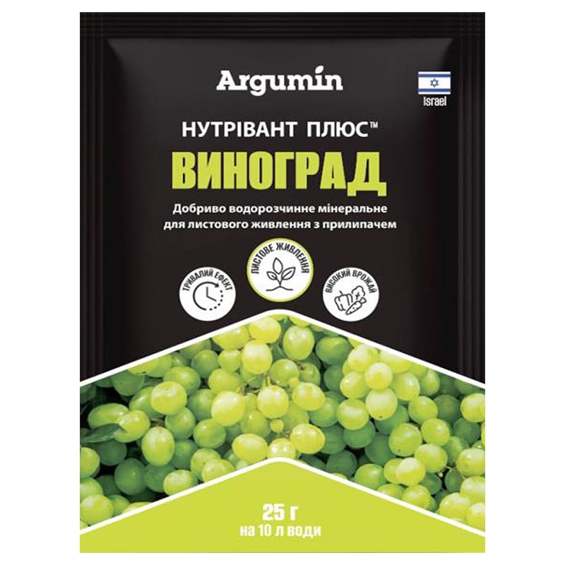 Добриво Нутрівант Плюс Виноград водорозчинне, мінеральне, признане для листового (позакореневого) живлення з прилипачем, в ключові фази розвитку винограду. Завдяки своєму збалансованому складу макро- та мікроелементів легко засвоюється рослиною, активізує ріст і повноцінний розвиток рослин. Добриво сприяє плодоношенню та накопиченню цукрів у винограді. За рахунок екологічного прилипача Fertivant не змивається опадами з листкової поверхні.